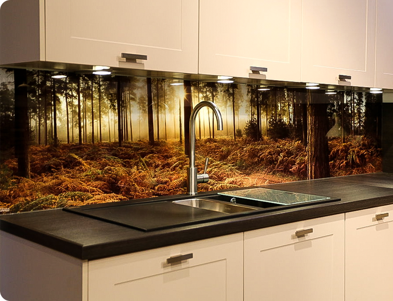 Технологии ультрафиолетовой печати - это инновационный способ прямой печати на самых различных материалах и поверхностях: стекло и зеркало, акрил и пластик, металл, дерево, мебельные фасады, кухонные фартуки и многое другое. УФ-печать позволяет создавать текстурные изображения и витражи с объёмными контурами.